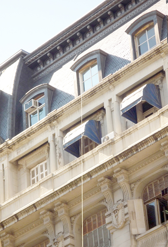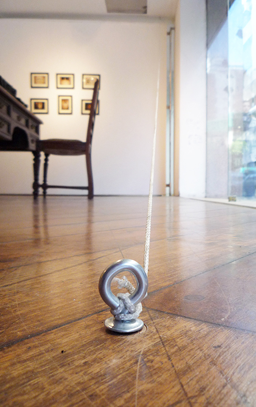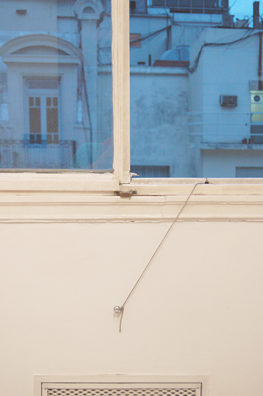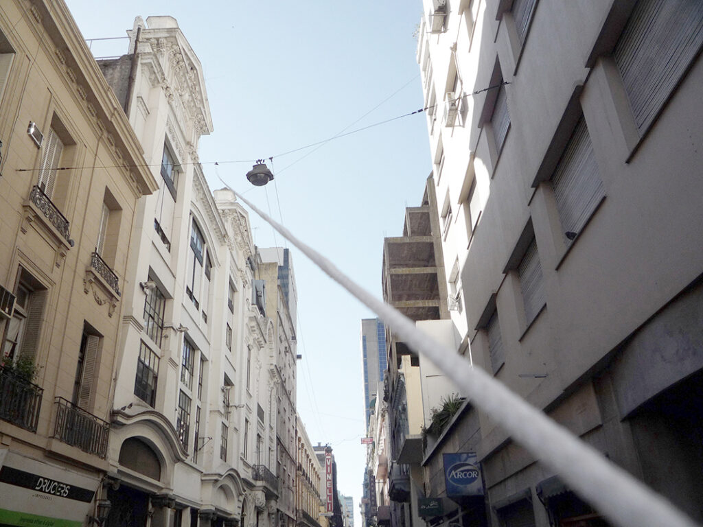 Unión fisica y provisoria (2011) In PROYECTOS La pieza consistió en unir el Fondo Nacional de las Artes y la Oficina Proyectista por medio una soga montada clandestinamente sobre cableado urbano y arquitectura.Ciudad de Buenos Aires, Argentina